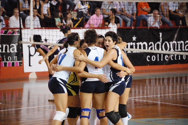 Nel primo set basta veramente poco all’Aquila azzurra per prendere il largo. La sospingono un servizio di squadra tatticamente molto buono e, in particolare, le belle battute in salto di Serena Ubertini. Fanno altrettanto bene anche le altre nuove, con Mazzulla protagonista di due muri nella prima frazione e Presicce di tre punti. Ma il primo pallone l’aveva messo a segno Mina Annese, seguita subito dopo da una sontuosa Rosalba Di Corato. Poco dopo la metà della frazione (parziali 8-3 e 16-7) si rivede lo stesso doppio cambio di Valenzano: Bisceglia-D’Agostino per Ricci-Ubertini. Complessivamente, grazie anche alle sempre impeccabile regia di Rosa Ricci, la squadra pare già bene affiatata e, a tratti, dà l’impressione di giocare insieme da una vita. Ad aiutarla, per la verità, la ricezione tutt’altro che irreprensibile del Sambuceto (Cannella 6, Floro 5), apparso solo a tratti in grado arginare la battuta tranese.