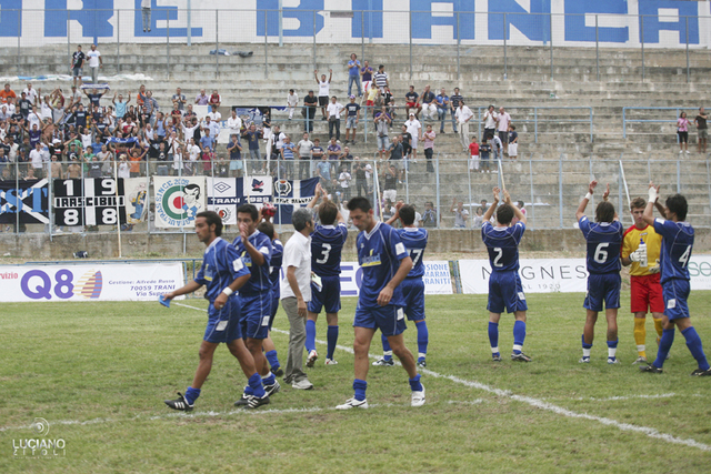 Tutte le reti sono state siglate nel primo tempio, con il vantaggio biancazzurro di Fumai, il pareggio dei locali di Patruno e la rete decisiva della Fortis con Latartara su calcio di rigore.