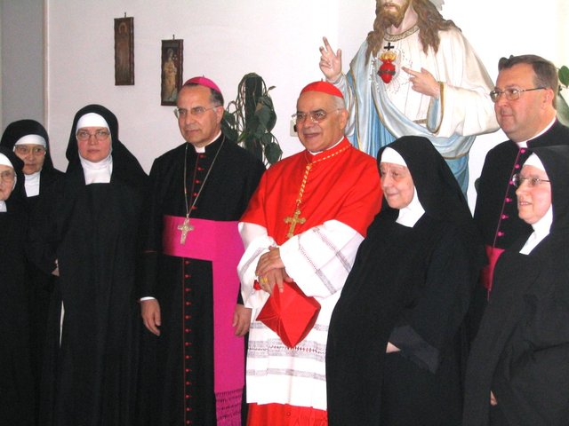 (foto d'archivio della comunità religiosa di via Andria risalente al 5 giugno 2005, in occasione del 50nario dell'Inconorazione della Madonna dell'Apparizione. Le monache sono con il Cardinale Jose Saraiva Martins)