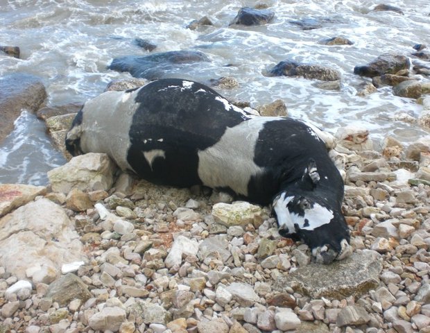 Singolare spiaggiamento quest’oggi a Trani. Infatti militari dell’Ufficio Locale Marittimo hanno ritrovato la carcassa di una mucca sulla spiaggetta del lungomare Senatore Mongelli, in prossimità del Lido Lalli.