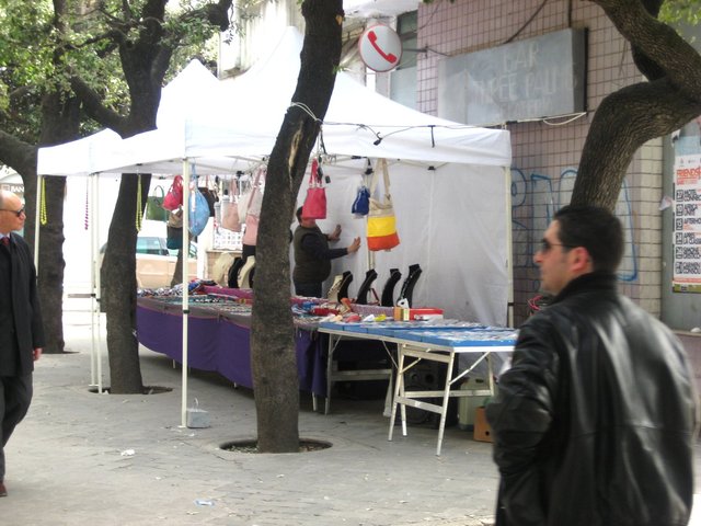 Sicuramente autorizzata d’amministrazione comunale (perché sicuramente è autorizzata una struttura ambulante di cotanta estensione ed esposizione, no?), la bancarella, almeno secondo il nostro modestissimo ed irrilevante giudizio estetico, è brutta da morire e rende ancor più brutto il già pessimo aspetto estetico di quella zona.
