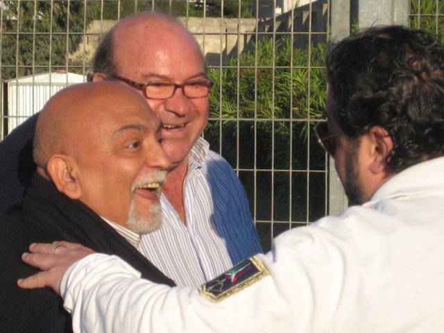 A margine, complimenti ai tifosi dello Scalea per lo striscione “pro Alessandro”, un bel gesto di solidarietà che ha meritato l’applauso sincero del pubblico. Da condannare gli applausi ironici di Faye al pubblico tranese, dopo la la sua espulsione, ed ancora di più i beceri cori razzisti nei suoi confronti di una comunque sparuta frangia di tifo biancazzurro, dalla quale opportunamente il presidente Flora (esultante nella foto) ha pubblicamente preso le distanze.