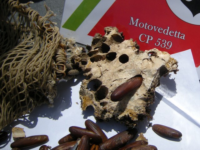 Dopo circa mezz’ora veniva notato riemergere un subacqueo con attrezzatura (bombole, muta, zavorra, maschera e pinne) che saliva a bordo del gommone; lo stesso aveva lasciato sul fondo, visibile, un retino marrone all’interno del quale c’erano oltre 10 chili di datteri di mare, una pinza di colore arancione che era servita per staccarli dagli scogli e 2 pietre del fondo marino contenenti ancora 10 datteri. Tutti i datteri, anche questa volta dalle dimensioni notevoli, sono stati posti sotto sequestro e le due persone sono state segnalate al dott. Fabio BUQUICCHIO, Pubblico Ministero di turno presso la Procura della Repubblica, oltre che per la detenzione e pesca dei datteri, per il danno ambientale prodotto e per il deturpamento di bellezze naturali, nonché per furto di patrimonio indisponibile dello Stato ed inosservanza dei provvedimenti dell’autorità.