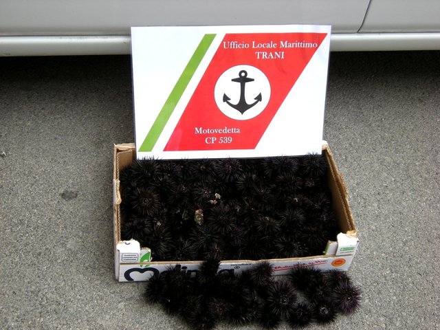 Personale della Motovedetta della Guardia Costiera di Trani CP539 ha sequestrato oltre 100 ricci di mare ad un pescatore sportivo tranese di 50 anni che aveva deciso di vendere il prodotto del suo pescato su via Bisceglie a Trani, presso una stazione di servizio.