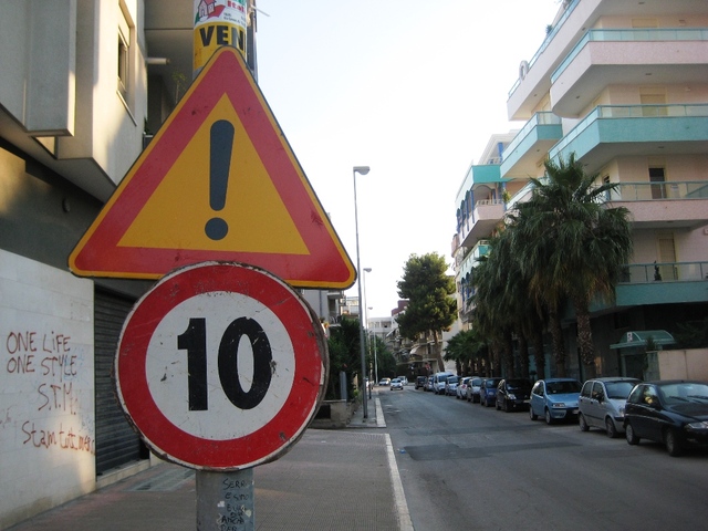 Erano stati posizionati prima dell’inizio dell’intervento, soprattutto perché la sede stradale, scarificata nei punti compromessi, presentava profondi dislivelli che avrebbero potuto compromettere la marcia veicolare a velocità anche appena sostenuta. E fin qui, dunque, tutto perfetto. Poi, però, sistemata la strada, nessuno si è più curato di rimuovere quei cartelli, che indicano un persistente pericolo generico ed un obbligo di marcia a dieci all'ora, tale da farsi sorpassare persino dalla imminente, solenne processione di San Nicola Pellegrino.