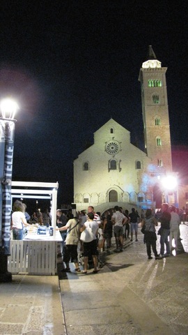 Sotto le stelle e sotto qualche nuvola che di minaccioso aveva ben poco si è svolta ancora una volta l'edizione di Calici di Stelle. Alle ore 21 la manifestazione ha avuto il via dallo spettacolo in piazza Duomo della compagnia U'Munacidde che ha dato vita ad una rivisitazione di Trani a go go, famosa canzone di Giorgio Gaber che richiama le taverne degli anni sessanta.