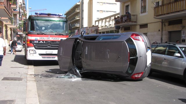 Un’auto, una Renault Megane, si è ribaltata in corso Imbriani nei pressi della caserma dei carabinieri. L’uomo al volante, che era solo, ha urtato una Ford Focus parcheggiata lungo il marciapiede del vicino panificio. Il conducente della Ford era proprio in quel negozio per comprare il pane ed aveva lasciato nell’auto altri due amici in sua attesa.