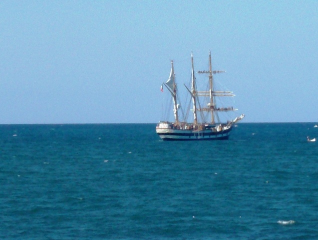 La nave che ha una superficie velica di circa 1000 m2, durante la sua attività addestrativa ha toccato la maggior parte dei porti del Mediterraneo e del Nord Europa e oggi pare proprio abbia assaggiato le acque (non molto pulite) del nostro territorio.
