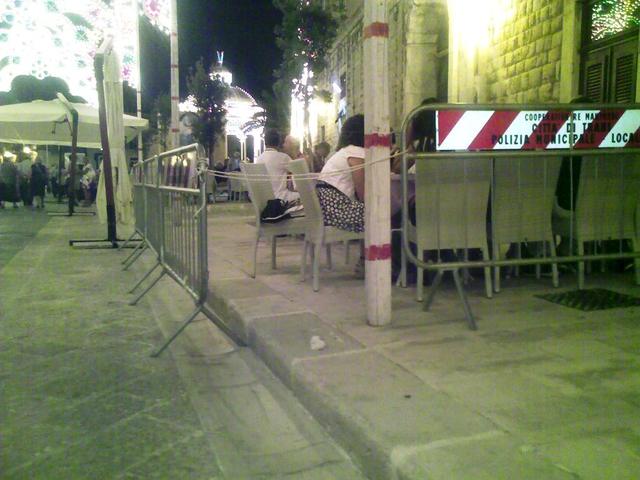 Non pensavo neanche che Via San Giorgio, fosse interdetta al traffico, decisione condivisa anche dalla mia modesta persona, per dare la possibilità al proprietario della pizzeria sita di fronte alla casa di riposo Bassi, di poter dislocare tavolini sul marciapiede ed ombrelloni sulla stessa via, ed il colmo dei colmi, usare le transenne di proprietà comunale per recintare e delimitare, l’occupazione di suolo pubblico, con l’ausilio di corde, e rendere il passaggio su quel marciapiede completamente impossibile. Siamo giunti proprio alla frutta. Mi sono preso la briga di avvisare tempo addietro, personalmente, il titolare del locale, visto che gli organi preposti al controllo, non controllano, di voler rientrare nei limiti che permettesse il transito delle sedie a rotelle.