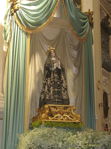 Sabato 11 Settembre alle ore 20,15 Concerto degli allievi dell’Accademia d’organo, diretta dalla prof. Grazia Salvatori, in collaborazione con l’Associazione Musicale Culturale “Domenico Sarro” di Trani. Questo concerto nasce da una collaborazione dell'Arciconfraternita con l'Associazione Musicale Culturale D. Sarro che per le lezioni di musica antica nell'ambito della sua Accademia d'organo, si è avvalsa, in tutta la passata stagione, dell'organo della chiesa di Santa Teresa, restaurato di recente. Domenica 12 Settembre alle ore 11,15 ci sarà la messa per gli ammalati (con la partecipazione della Sez. di Trani dell’U.N.I.T.A.L.S.I), alle ore 18,30 il rosario, alle 19.00 i vespri solenni della B.V. Maria Addolorata e la messa.