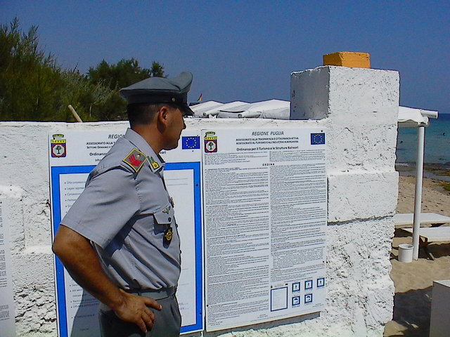 A Trani, nell’ambito di specifici servizi di polizia economico-finanziaria ed a tutela del demanio, militari di questo Reparto denunciavano. il gestore di un lido balneare sito sul lungomare di Trani, nonché il concessionario dell’area demaniale ove insisteva tale struttura, per aver installato abusivamente su una superficie demaniale di circa mq. 600(seicento), varie attrezzature non previste nell’atto concessorio, trasformando in tal modo l’area utilizzata in un vero e proprio stabilimento balneare.