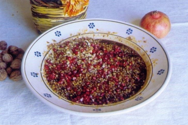 Il grano veniva utilizzato nelle celebrazioni di commemorazione dei defunti, alla fine del mese di ottobre e durante quello di novembre. Rappresentava l’alimento simbolo della civiltà contadina. Secondo la tradizione gli ingredienti di questa particolare pietanza erano il grano unito alla melagrana, insieme venivano offerti a Demetra, dea dell’agricoltura, e a sua figlia Kore, rapita da Plutone, divinità infernale, poiché aveva assaporato i “chicchi rossi dell’Ade”.