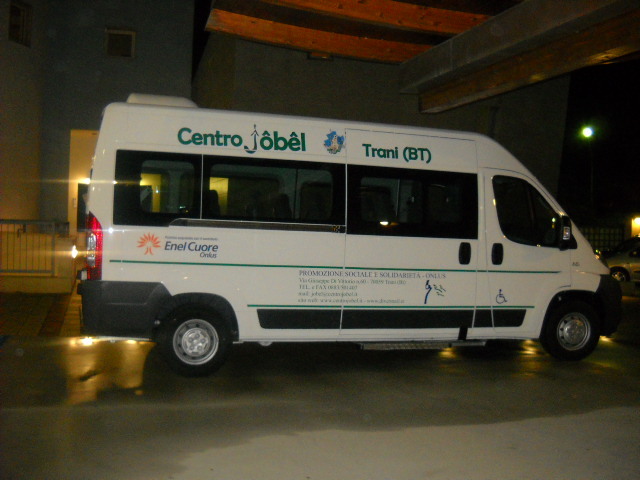 Si è tenuta la cerimonia di consegna a Trani presso la sede del centro di pronto intervento per disabili Jobel di Trani alla presenza di Giorgia Presen Cicolani, vice Sindaco e assessore all’emancipazione sociale. Il nuovo mezzo attrezzato per il trasporto di persone diversamente abili sarà utilizzato per i servizi già attivi nel Centro Jobel e per i nuovi servizi aperti al territorio. La cerimonia di consegna è stata occasione per la sua benedizione da parte di Don Mimmo De Toma, responsabile del centro, che ha ringraziato Enel Cuore: «Una onlus d’impresa eccezionale che opera in tutto il mondo con finalità umanitarie che ha consentito di poter far ulteriormente stimare il lavoro da noi svolto a favore dei disabili».