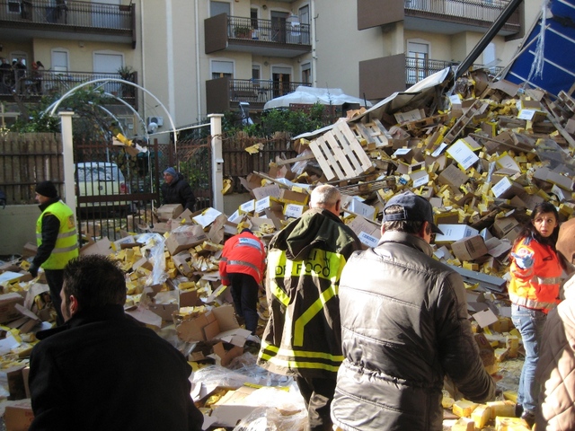 Il suo camion è rimasto per quasi tutta la giornata in bilico tra la strada sopraelevata e quelle case, circondato da detriti e da quei 280 quintali di pasta fresca all’uovo che l’uomo stava trasportando a Lecce e che, invece, sono finiti al centro di un assalto senza precedenti di gente a caccia di scorte per un Natale più ricco a tavola. Proteste della Caritas e di altri centri che assistono soggetti indigenti. Sul posto carabinieri, polizia stradale, vigili del fuoco, operatori dell’Amiu e della Servizi ambientali, oltre che dei soccorritori del 118 e degli Operatori emergenza radio. La rimozione del mezzo è avvenuta in serata, e, quindi, per tutta la giornata disagi si sono registrati per la circolazione lungo la 16 bis e, sulla sottostante via Superga, per i curiosi.