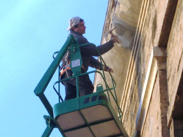 Le operazioni sono a cura dell’impresa Antonacci, sul luogo anche l’assessore ai lavori pubblici, Pietro Di Savino, che spiega le cause del problema: «Le strutture interne in ferro dei cornicioni si sono parzialmente deteriorate per infiltrazioni ed usura del tempo. Ossidandosi, il ferro si è gonfiato facendo pressione sull’intonaco e determinando la caduta dei calcinacci.