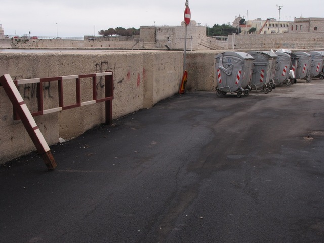 Si tratta del cancello che chiudeva il tratto di strada tra porta Vassalla e il molo all'ombra della cattedrale. Stessa operazione della catena di via San Giorgio: lucchetto intatto, estremità opposta divelta. La strada è nuovamente percorribile da veicoli che potrebbero tranquillamente parcheggiare in questa zona senza nessun problema. Le foto mostrano la situazione attuale di suddetta zona.