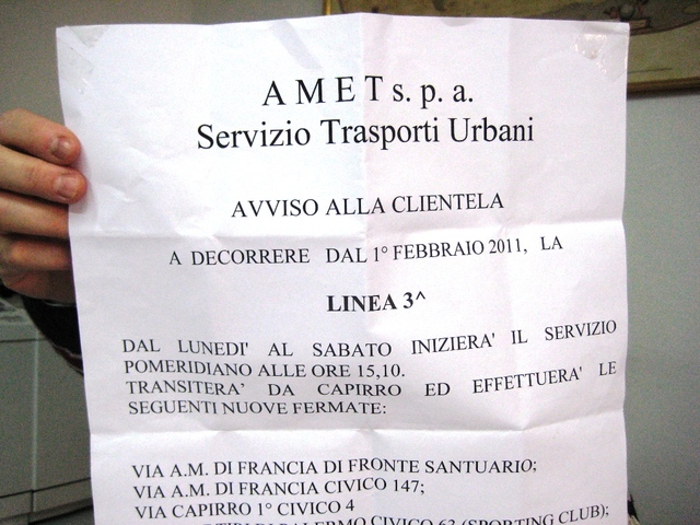 Lo si evince da un manifestino, affisso a bordo dei bus, che avvisa gli utenti dell’imminente integrazione del percorso.