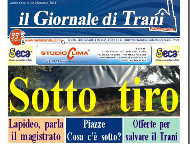Da questo numero in poi Il Giornale di Trani sarà anticipato da un articolo sul nostro portale di riferimento. Anticiperemo tutti gli argomenti che saranno trattati ricordandovi che sono tutti approfondimenti sulla nostra città, non i "semplici" articoli che trovate sul nostro sito stesso quotidianamente.