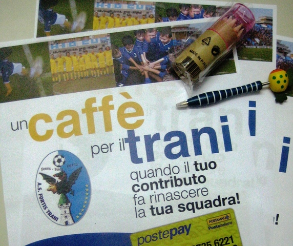 Per ultimo, la società ha diffuso manifesti, dal titolo «Un caffè per il Trani», dall’evidente significato. Basta veramente poco , anche il costo di un caffè, per aiutare la società.