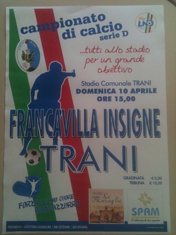 Una notizia di colore in vista della partita tra Francavilla in Sinni e Fortis Trani che verrà disputata domenica prossima alle ore 15 presso lo stadio comunale di "casa nostra". Chissà però cosa penseranno i tifosi avversari che si troveranno di fronte ai manifesti stampati per la partita.