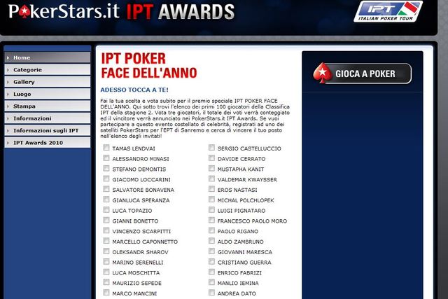 Per aiutare il nostro concittadino a vincere questo premio servirebbe votare tre giocatori, il totale dei voti sarà conteggiato e il vincitore annunciato durante i pokerstars.it IPT Awards.