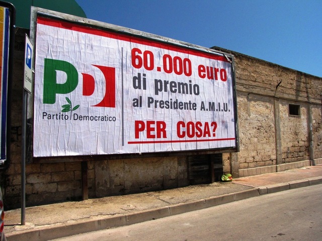 Il testo è breve, ma inequivocabile. Condensato al massimo per dilatarne il carattere e fare in modo che anche il cittadino più distratto si fermi e legga, ma che lo stesso messaggio non sfugga neanche all’automobilista in transito. La firma è del Pd di Trani, quindi il committente del messaggio, senza tema di smentita, è il segretario politico, Tommaso Laurora.