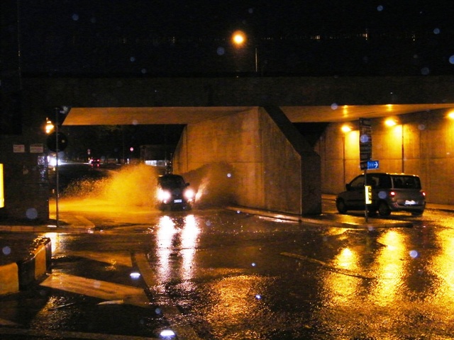 A seguito della pioggia battente caduta a Trani ieri sera venerdi 1 luglio 2011 intorno alle 22:30 circa, accompagnata da continui fulmini e tuoni, si è di nuovo verificato un principio di allagamento del sottopasso di Via Pozzo Piano .