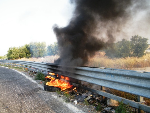 Ieri pomeriggio si è verificato l'ennesimo incendio di sterpaglie lungo i bordi della statale 16 bis, zona Ponte Lama, detta anche Carrara delle Monache. Le fiamme partite dalle sterpaglie si sono poi propagate fino a raggiungere i rifiuti depositati sul ciglio della strada, mandando in fumo anche pneumatici ed un cumulo di lastre di amianto.