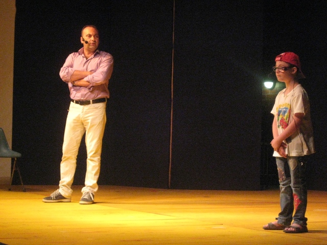 Ieri, nella serata inaugurale, si è assistito a due opere fuori concorso e ad un intermezzo, molto gradevole, in cui l’attore e regista Giuseppe Francavilla ha dialogato con Marco Tesoro, un bambino affetto da sindrome di Down, seguendo il testo di «Io mi chiamo Giorgio», di Giorgio Gaber. Tesoro è uno dei ragazzi che Francavilla segue nel suo laboratorio teatrale, «La bottega delel emozioni», con sede a Trani (via Di Vittorio 40) ed Andria.