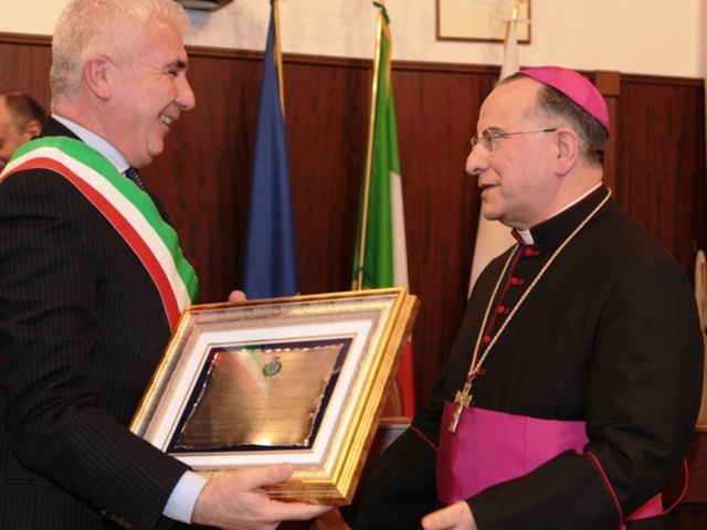Ma l’occasione, come ci si aspettava, è stata propizia perché il primo cittadino esprimesse pubblicamente, durante il suo intervento, la solidarietà a Mons. Savino Giannotti, presente in platea, ed a tutta la diocesi per l’inchiesta che li vede coinvolti.