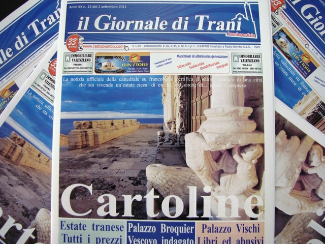 La nostra cattedrale sul francobollo, il vescovo indagato per Palazzo Broquier, tutte le cifre dell'estate tranese. Il nostro quindicinale è in edicola con tanti approfondimenti, le benemerenze e gli abusivi di Palazzo Vischi. Ritorna la nostra rubrica "Ricordi su carta", flash sul festival Il Giullare e tanto altro sullo sport locale. Correte in edicola.