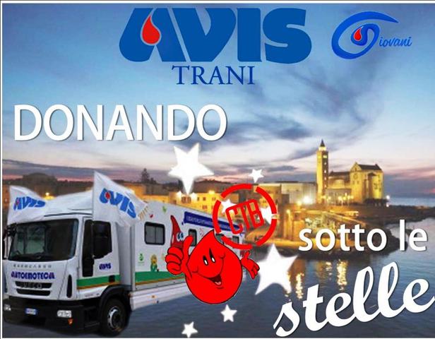 La sezione Avis di Trani impegnata quotidianamente nella promozione della donazione del sangue e di emocomponenti, per rispondere all’emergenza estiva ha ideato e promosso un nuovo evento che si chiamerà “Donando sotto le stelle”.