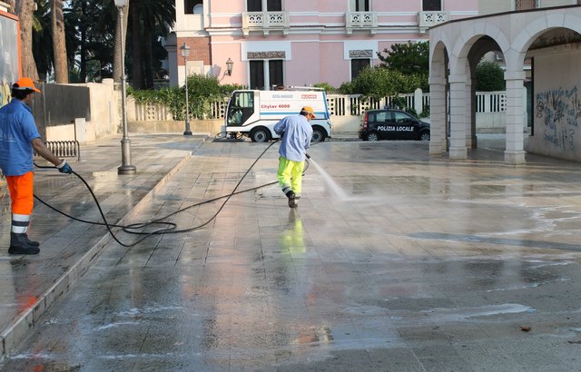 Le operazioni di lavaggio del suolo e dei manufatti sono iniziate intorno alle 6.30 e hanno richiesto il secondo riempimento dell’autocisterna a sostegno, giacché la prima era stata prosciugata per l’enorme quantità d’acqua che le operazioni hanno richiesto.