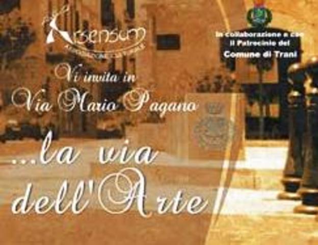 Anche oggi avrà luogo a Trani la terza parte della manifestazione “La via dell’Arte” organizzata dall’associazione culturale “Arsensum” con il patrocinio del Comune di Trani - www.arsensum.it , gruppo fb Arsensum.