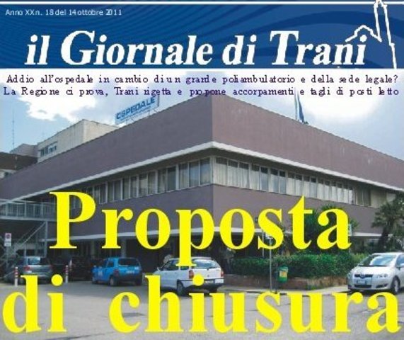 Nell'ultimo numero de «Il giornale» è apparso un articolo che illustra i futuri scenari dell'ospedale di Trani. Sulla base di queste notizie, ecco, di seguito, la posizione della Federazione della sinistra.