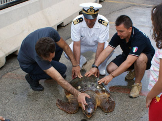 Nel corso della giornata è giunta la segnalazione del rinvenimento di una tartaruga di mare (della specie Caretta Caretta). L’esemplare è stato avvistato nelle acque antistanti il litorale di Trani da un motopesca che ha allertato immediatamente via radio questo Comando riferendo che la tartaruga pur essendo in buono stato di salute, aveva ingoiato un grosso amo, e quindi necessitava di cure veterinarie immediate. Interveniva pertanto dipendente battello G.C. A75 già impiegato in zona per pattugliamento della costa, e contemporaneamente veniva allertato il centro di recupero del WWF di Molfetta, il quale giunto in loco prendeva in consegna l’animale per prestare le dovute cure mediche.