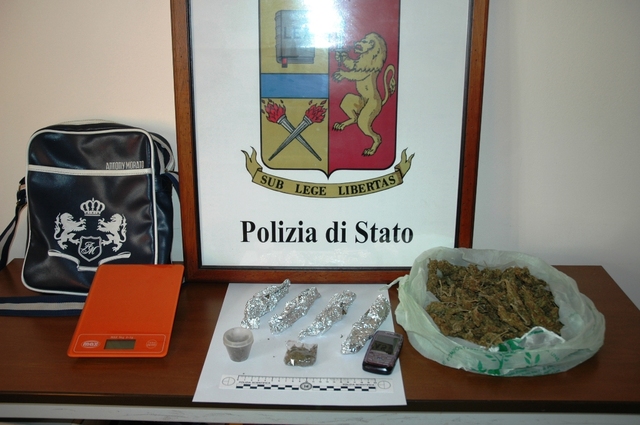 La perquisizione personale del 26enne invece ha portato alla luce ulteriori 3 grammi di marijuana e un bicchierino contenente 7 grammi di sostanza stupefacente. Gli agenti si sono così recati presso la casa dell'arrestato dove hanno trovato nella sua camera da letto un borsello contenente 250 grammi di marijuana sfusa che è stata poi sequestrata.