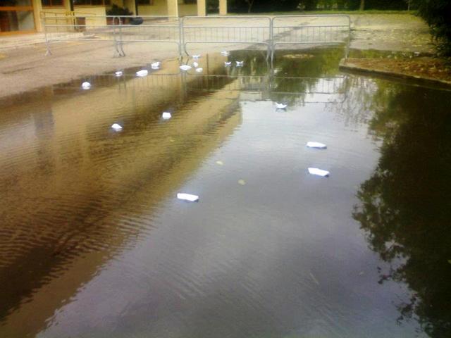 Barchette nel lago per protesta. Singolare, ma certamente efficace. Gli “armatori” sono gli studenti dell’Itc “Aldo Moro”, che in questo modo intendono porre all’attenzione dell’amministrazione provinciale i disagi che sistematicamente patiscono a scuola in caso di pioggia: «Lo stato della nostra scuola è ormai indecente – esordisce Davide parlando a nome di altri compagni di classe ed istituto -. Ogni volta che piove noi alunni non possiamo accedere a scuola né dal cancello principale, ne dall'ingresso secondario (dal quale si accede al parcheggio dei motorini), in quanto si allaga in una maniera assurda. L'acqua – racconta ancora Davide - ci mette anche almeno due o tre giorni per andare via, creando un continuo disagio sia a noi alunni, sia ai docenti».