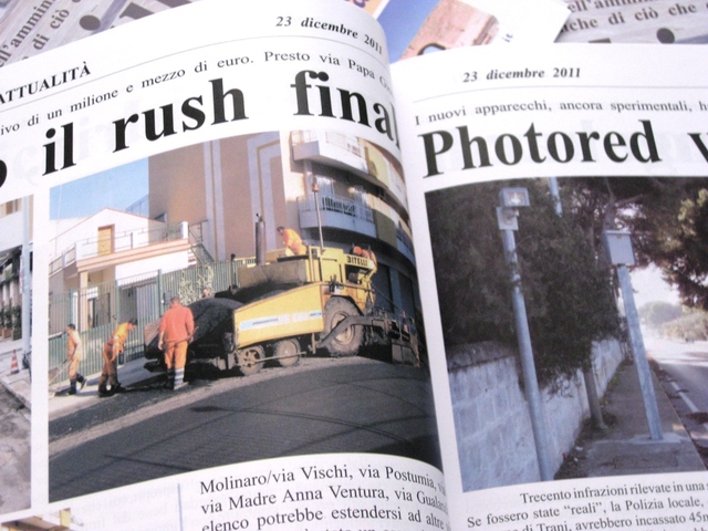 Da oggi in edicola il nuovo numero de Il Giornale di Trani, lo trovate a soli 1,5 euro. Seconda puntata di Ricordi su carta dedicata alle Caterinette, inaugurazione di piazza Longobardi, i consensi e le lamentele. Photored, già rilevate 300 infrazioni, tutti i particolari. Dimensionamento scolastico, come cambierà il volto della scuola a Trani? Trani-Andria, la strada maledetta. Periodo nero per il basket tranese, come uscirne? Tutto questo e tanto ancora solo su Il Giornale di Trani, il quindicinale cartaceo della nostra città.