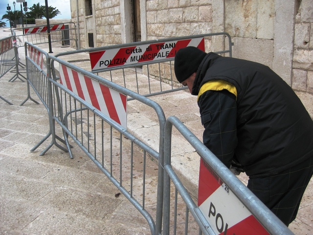 Non soltanto processioni e manifestazioni. Ultimamente anche, e soprattutto, cedimenti stradali e messa in sicurezza di stabili pericolanti, l’ultimo dei quali, con evidente dispiegamento di materiale, per cingere la parte inaccessibile al pubblico di palazzo Gadaleta. Va da sé, quindi, che le transenne comunali non bastano più e, per questi motivi, il comandante della Polizia locale, Antonio Modugno, ne ha disposto l’acquisto di altri cinquanta esemplari, tutte zincate e dotati di fascia metallica rinfrangente, al prezzo complessivo di 6836,50 euro dalla ditta “Amenduni Luigi”, di Ruvo di Puglia. Fornitura di fiducia resasi necessaria per l’urgenza e perché, nel frattempo, «la Consip non ha ancora attivato una convenzione per lo stesso tipo di fornitura».