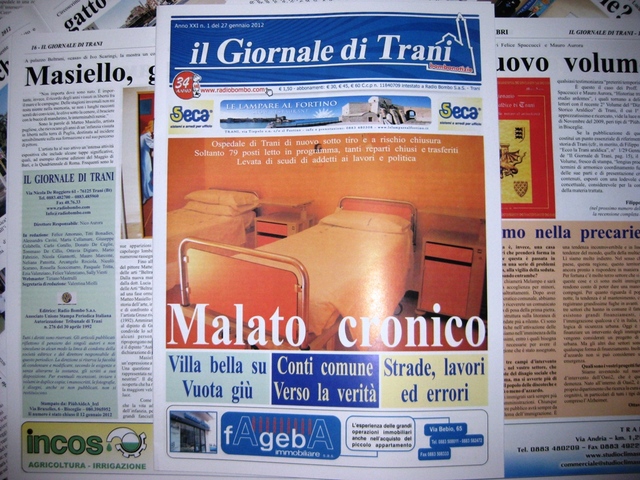 In edicola il nuovo numero de Il Giornale di Trani, numero 1 del 2012. La nostra testata cartacea entra nel trentaquattresimo anno di vita e dedica la prima pagina all'argomento cittadino principe degli ultimi mesi: l'ospedale.