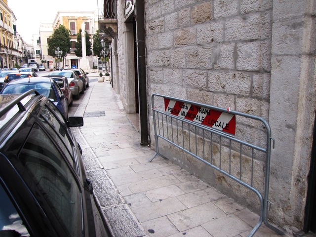 Non abbiamo fotografato le transenne di Palazzo Gadaleta nè quelle in via Fra Diego Alvarez in quanto sono "utilizzate" in qualche modo: e in totale ce ne sono una 30ina.