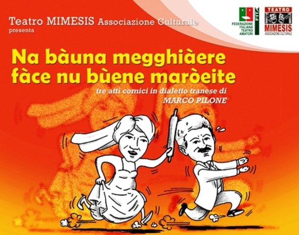 Andrà in scena fino a questa sera, venerdì 20 gennaio, presso il teatro Impero, la commedia in vernacolo tranese dal titolo: «Na bàuna megghiàere, face nu bùene maròeite». A proporla, la compagnia Mimesis, diretta da Marco Pilone, che è anche l’autore del testo. Sipario ore 21.