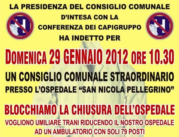 A quanto s’è appreso la seduta si aprirà con una relazione del sindaco (o del presidente del consiglio), che motiverà la proposta di delibera. A seguire, il direttore generale Gorgoni illustrerà lo stato dell’arte ed i programmi dell’Asl Bt per Trani. Dopo di lui, saranno invitati ad intervenire, se vorranno, i rappresentanti istituzionali a vario titolo invitati. Infine, toccherebbe ai soli capigruppo, con tempi limitati entro massimo cinque minuti. Seguirà la votazione. Prima della seduta, all’esterno del presidio, la “sfilata” dei camici bianchi.