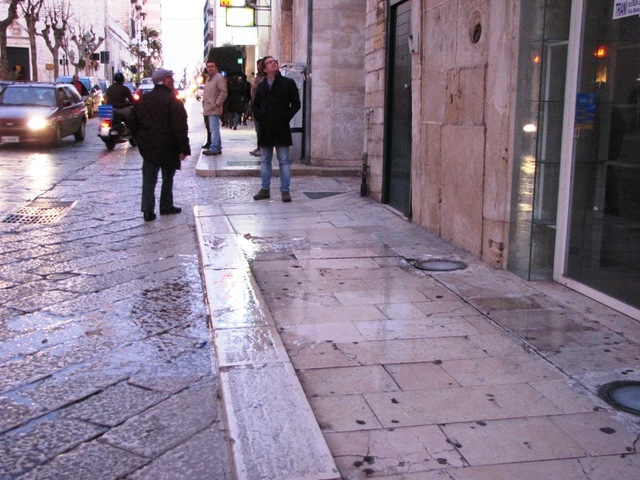 Nonostante i lavori di rifacimento di marciapiedi e cordoli, a Trani c'è chi continua a cadere inciampando per colpa di mattoni sconnessi. Questo pomeriggio infatti, intorno alle 18, un signore 75enne è inciampato sul lastricato del passeggio pedonale di via Mario Pagano. L'uomo che passeggiava sul marciapiede adiacente la chiesa di San Francesco, direzione piazza Libertà, a causa della pavimentazione sconnessa, non è riuscito ad evitare la caduta, né tanto meno ad attutirla. Sul posto sono intervenuti i soccorritori del 118 di Trani. L'uomo ha riportato ferite al setto nasale e all'arco sopraccigliare.