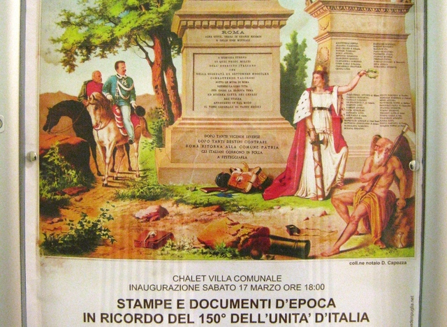 Dobbiamo rettificare quanto scritto ieri in merito alla conclusione delle celebrazioni per il centocinquantesimo anniversario dell’Unità d’Italia. Una manifestazione a Trani è in corso e, per la cronaca, si è inaugurata proprio ieri e durerà fino al primo aprile. Si tratta di una mostra dal titolo: «Stampe e documenti d’epoca in ricordo del 150mo dell’Unità d’Italia». Si tiene allo chalet della villa comunale ed è promossa dall’associazione “Puglia antiqua” (la stessa che si prende cura del mostra mercato mensile dell’antiquariato in piazza Mazzini), con il patrocinio del Comune. La notizia viene da un manifesto trovato per caso nella casa comunale. Purtroppo, però, nessuno aveva pubblicizzato l’evento diffondendo comunicati.