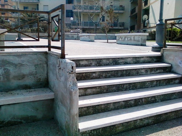 Ferri arrugginiti ben in vista, panchine sgretolate, elementi poco felici per i turisti che passeggiando sul nostro lungomare (cosa abbastanza improbabile al momento...) volessero fermarsi per una pausa prima di procedere e visitare a piedi la zona giardino della città: monastero e Colonna. Ma forse stiamo fantasticando...