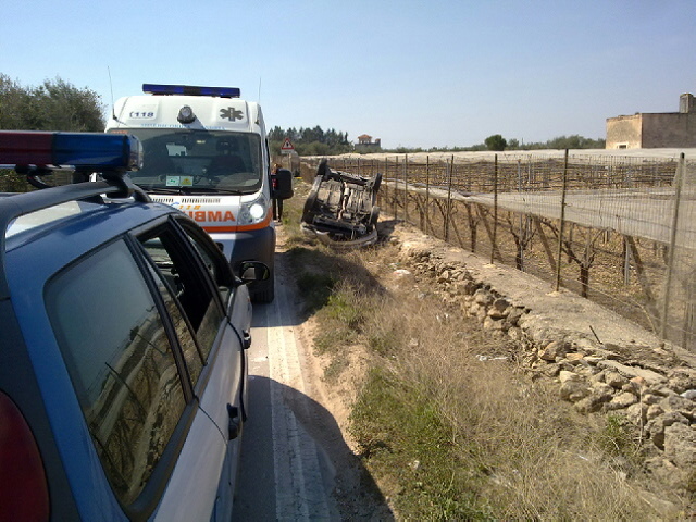 Intorno alle 13 un incidente si è verificato sulla provinciale Trani-Andria. Un veicolo, con a bordo due donne, è finito fuori strada capovolgendosi.