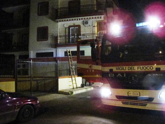 Notte di fuoco e spavento per i residenti di via Dell'Olio a Trani per un incendio divampato intorno alle 2.30 all'interno di un box auto che si trova al di sotto dei locali del supermercato Di Meglio.