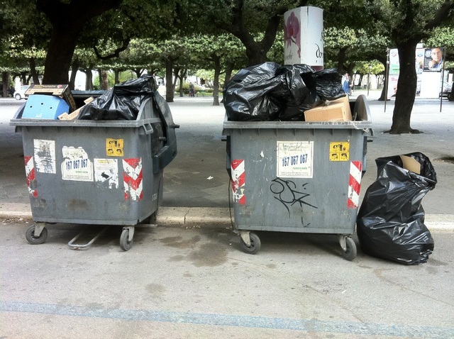 Il negoziante ha scattato questa foto alle 17 di ieri, sabato 5 maggio, ed i bidoni sono visibilmente stracolmi: "Spero che segnalando questo scempio sul vostro portale qualcuno possa darsi una mossa. C'è sempre cattivo odore e si formano colonne di insetti che invadono le nostre attività".